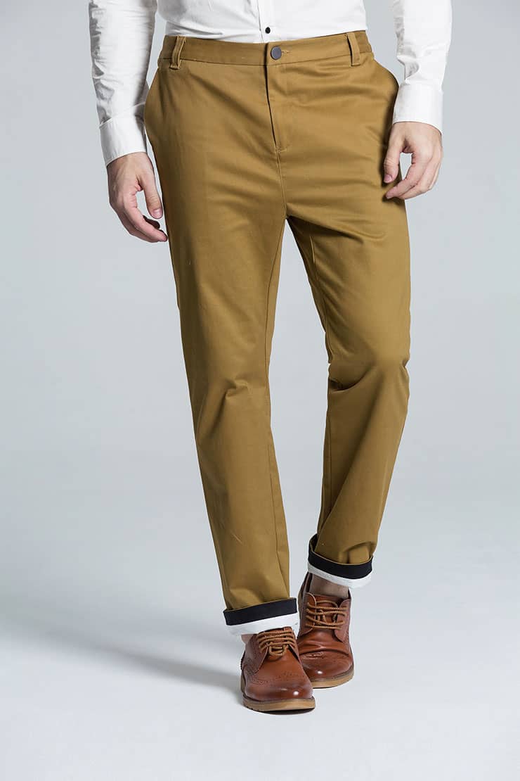 两侧斜插口袋剪裁,裤脚翻边撞色装饰,后袋双唇袋撞色设计,呼应裤脚细节;采用微弹棉质面料,吸湿性好,手感顺滑柔软,穿着舒适。