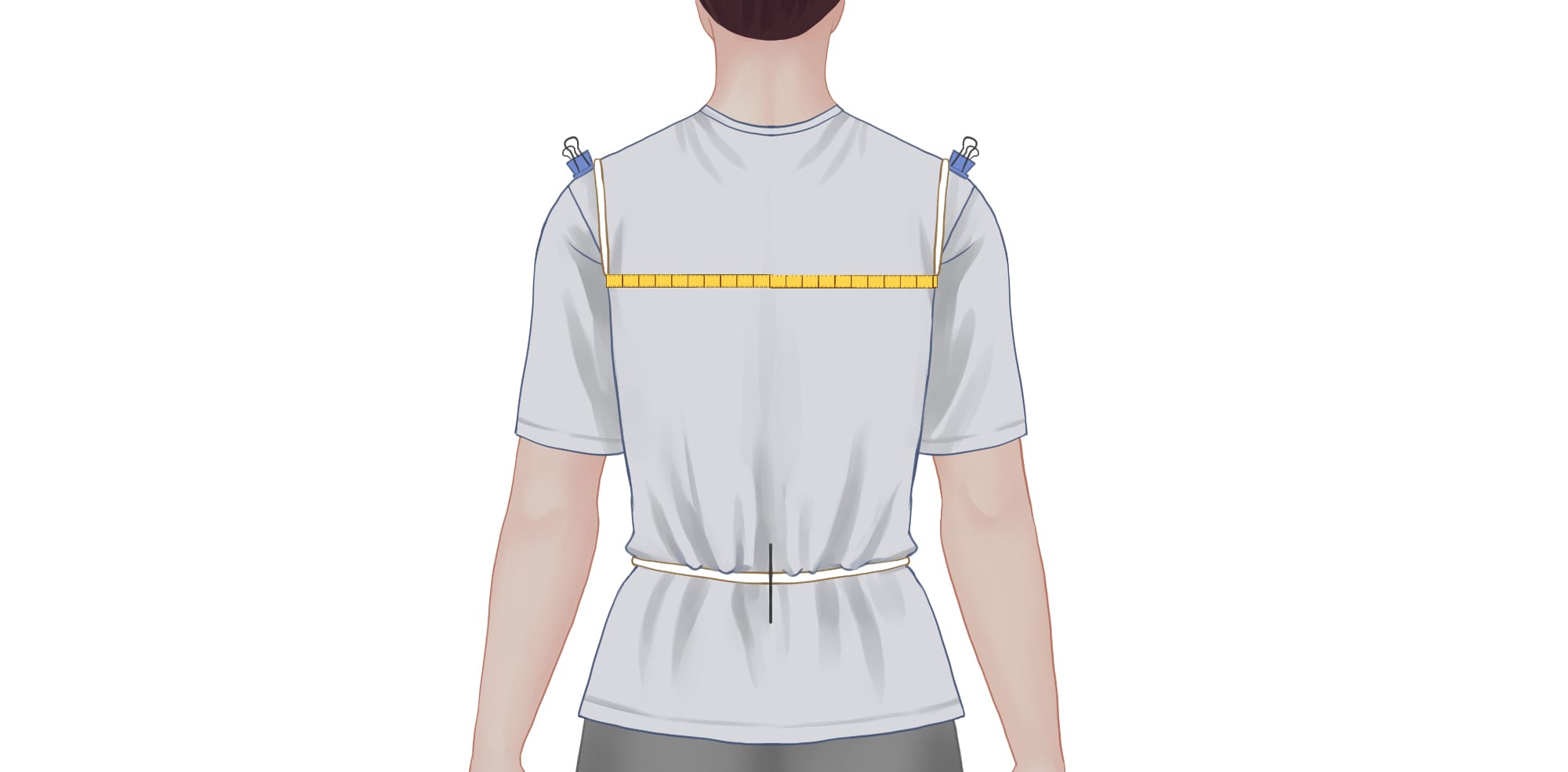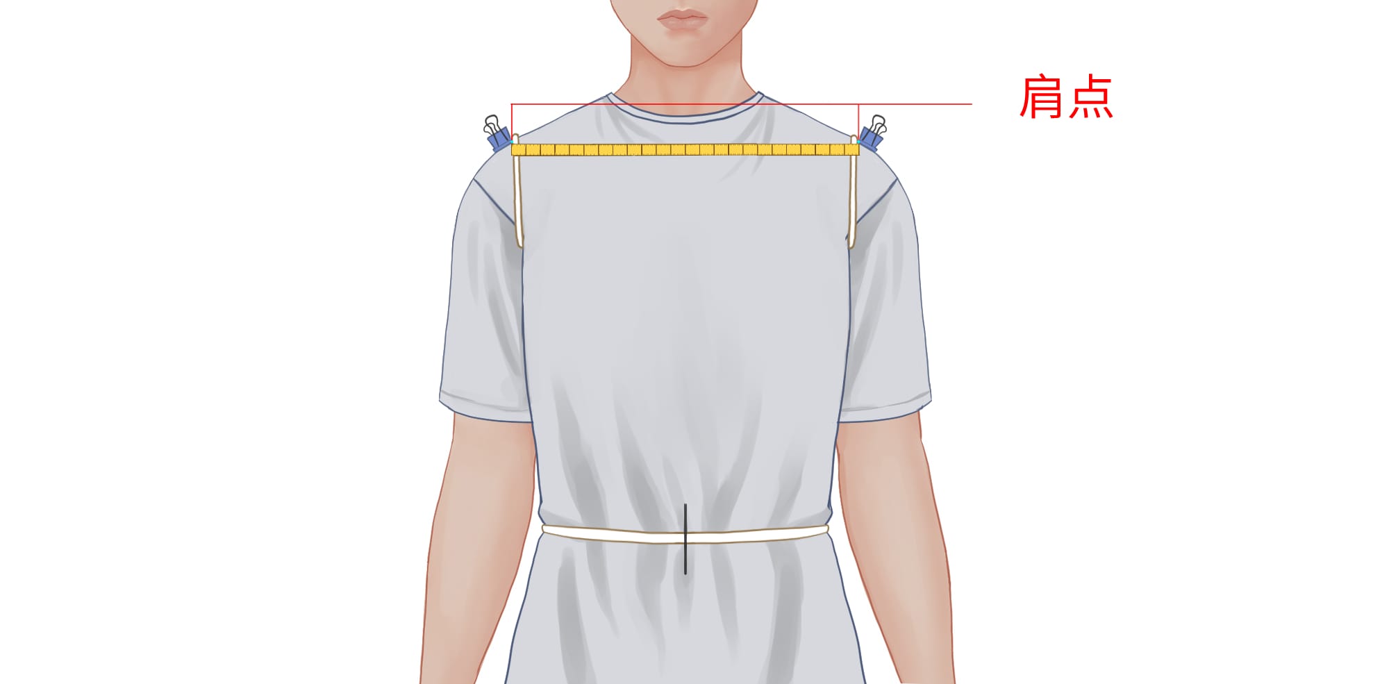 请按以下说明先标记肩点,再测量后肩宽、背宽、前肩宽和胸宽:
