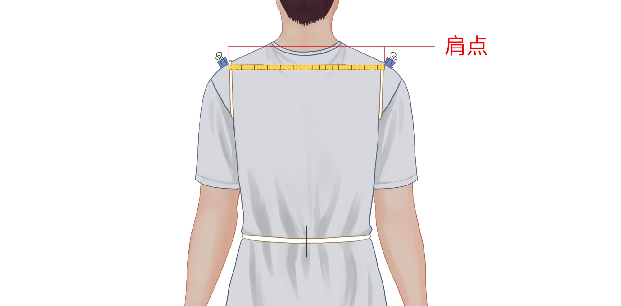 - 后肩宽:在后背贴体测量两肩点的水平距离得到后肩宽。
