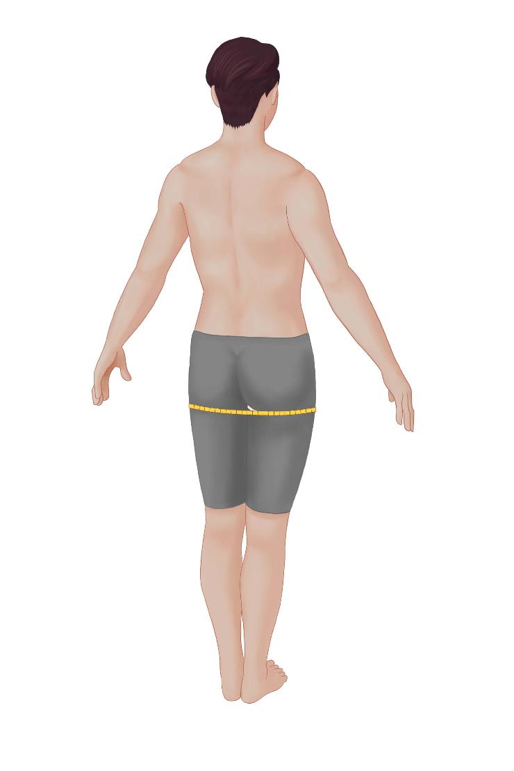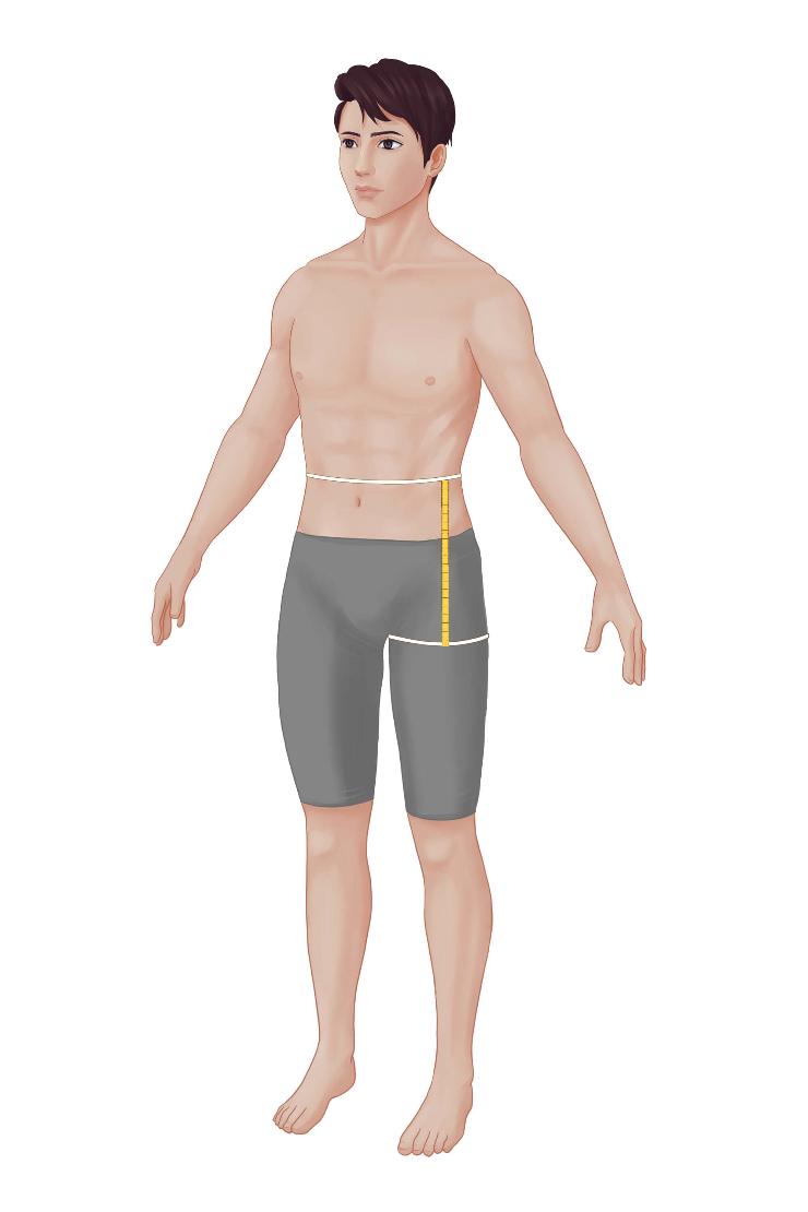 被测量者穿着一条深裆、宽松、裤腰松紧适度的松紧带运动裤或者睡裤,后裤腰口穿在后腰髋骨上缘位置,前裤腰口根据喜好穿在平齐或低于后裤腰口水平的位置,测量者用软尺沿着裤腰口,绕腰部一周测量裤腰围。注意:1、测量裤腰围时,被测量者可以按自己的裤腰穿着松紧喜好,决定软尺是否要收紧以及收紧的程度。2、被测量者可以按自己的穿着需求决定是否穿着上衣或穿着什么上衣来测量裤腰围,例如,要购买扎在上衣外的下装时,可穿着相应的上衣并扎进裤腰里测量裤腰围。每次购买下装前,都要注意检查裤腰围量身数据是否符合穿着需求,并修改不符合需求的裤腰围量身数据。