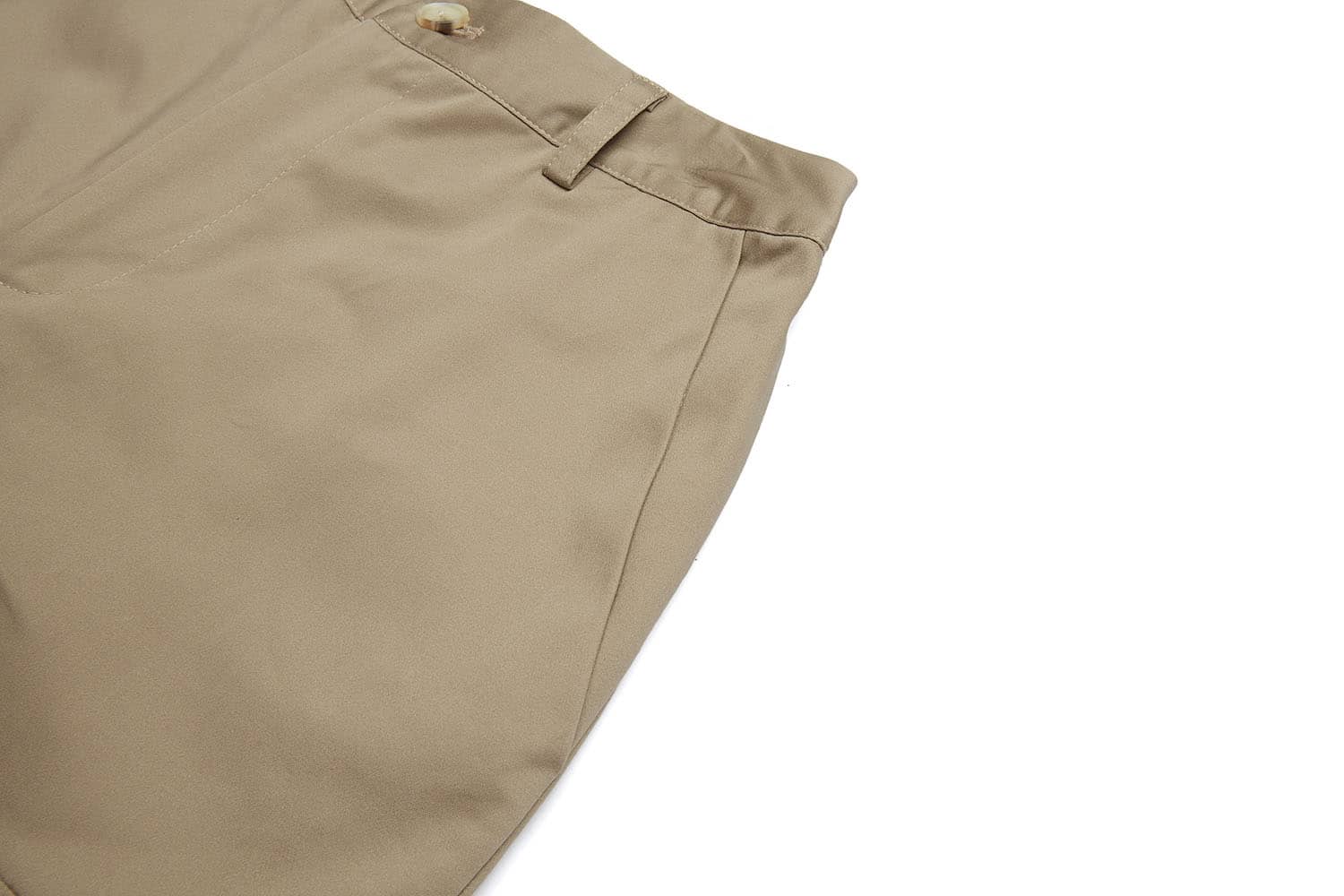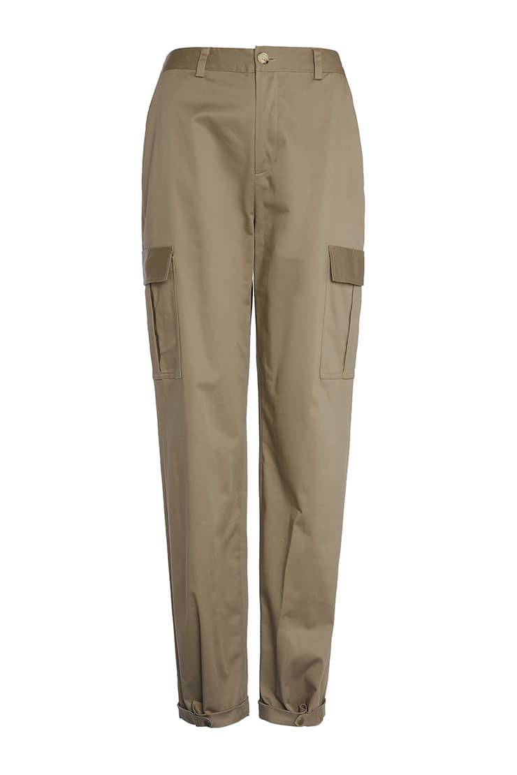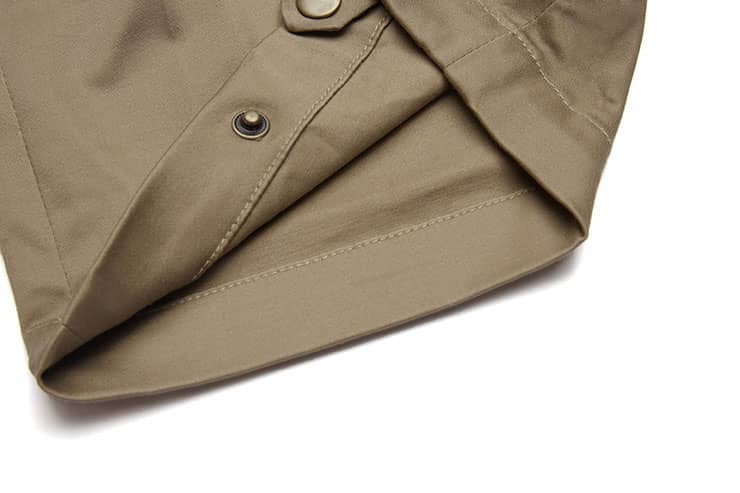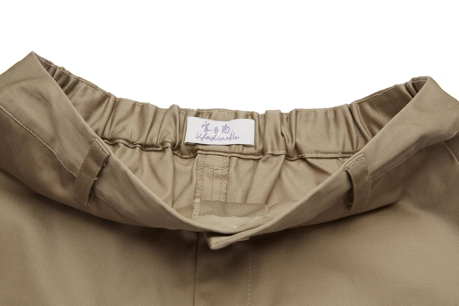 松紧调节贴体腰头,侧边斜插袋,前中纽扣拉链门襟,后幅方形贴袋,腿侧工装风翻盖大贴袋;四合扣收拢裤脚,可开合转换多种造型;过踝裤长,合体锥形廓形,时尚帅性;梭织混纺面料,手