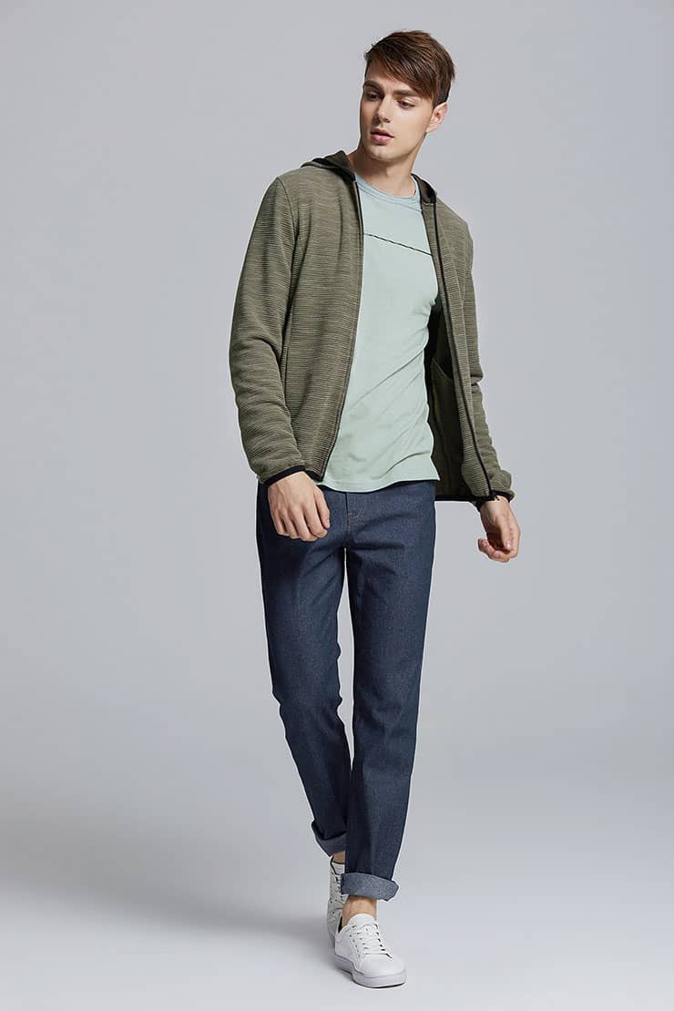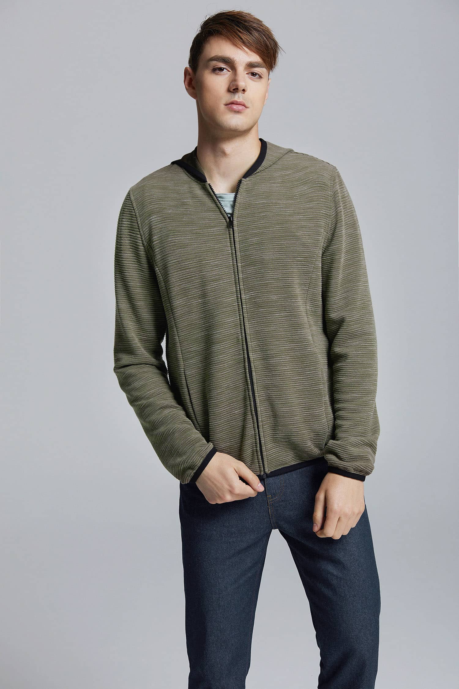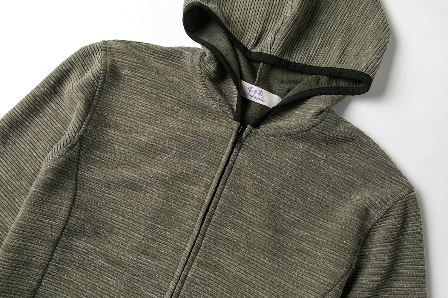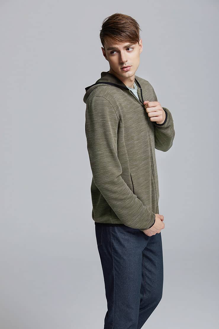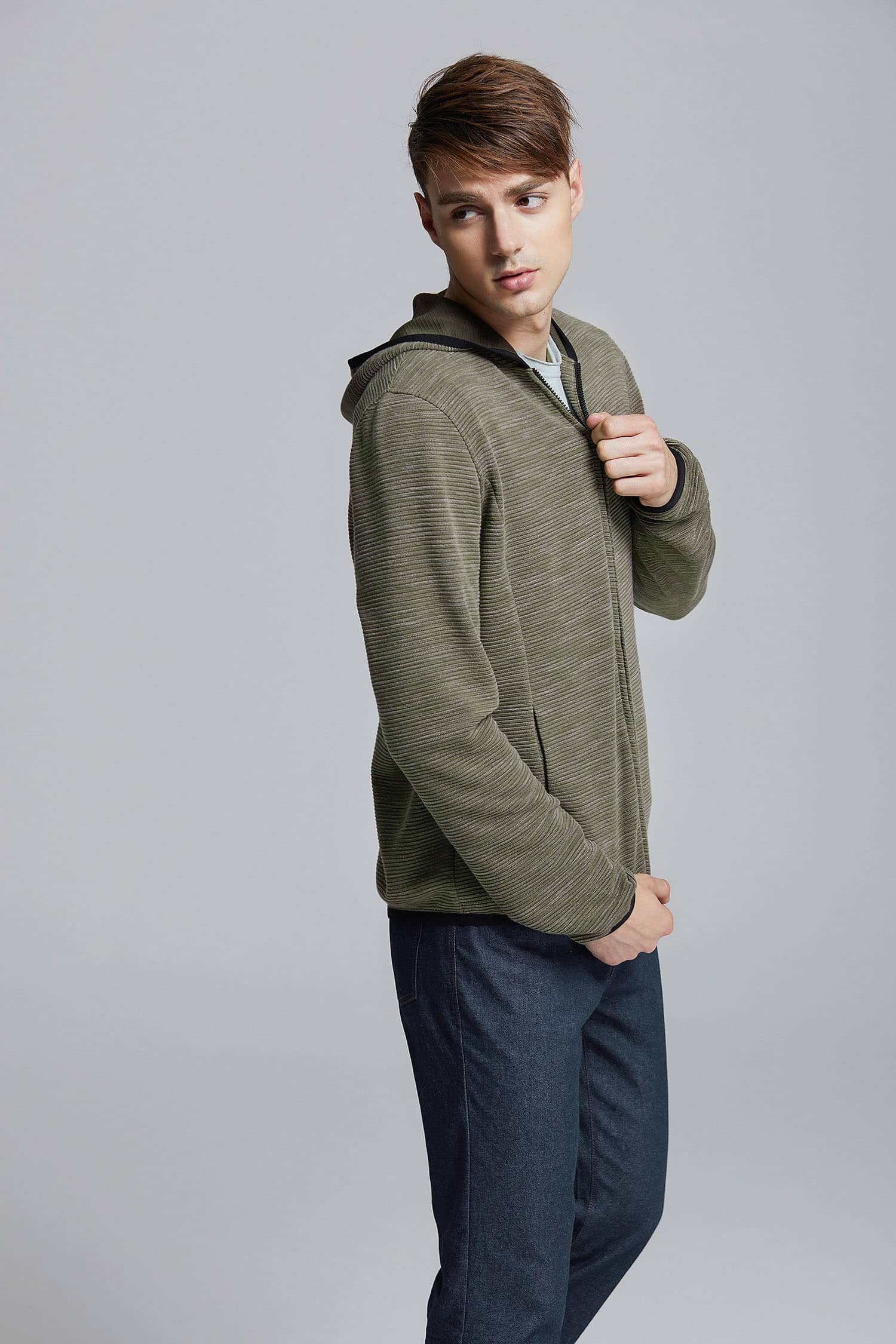 特色连帽开衫设计,隐形的侧口袋,下摆袖口撞色捆边,增加视觉效果提升美感;采用定制面料,复古的杂色纹路,柔韧细致,穿着舒适自在。