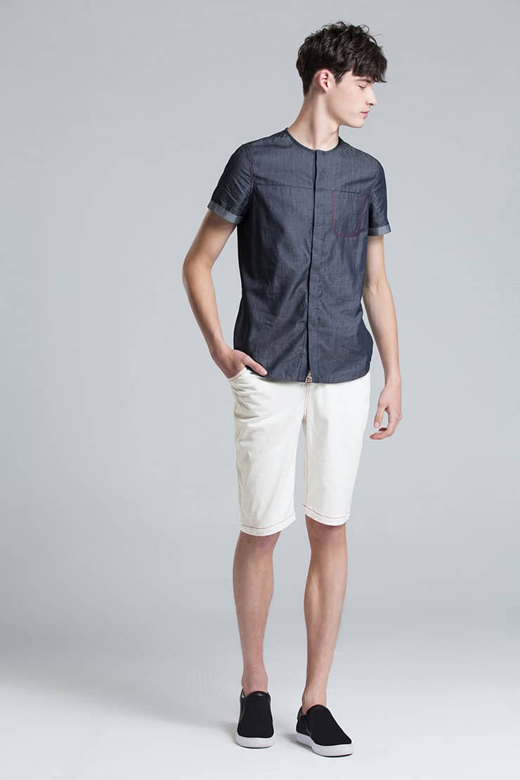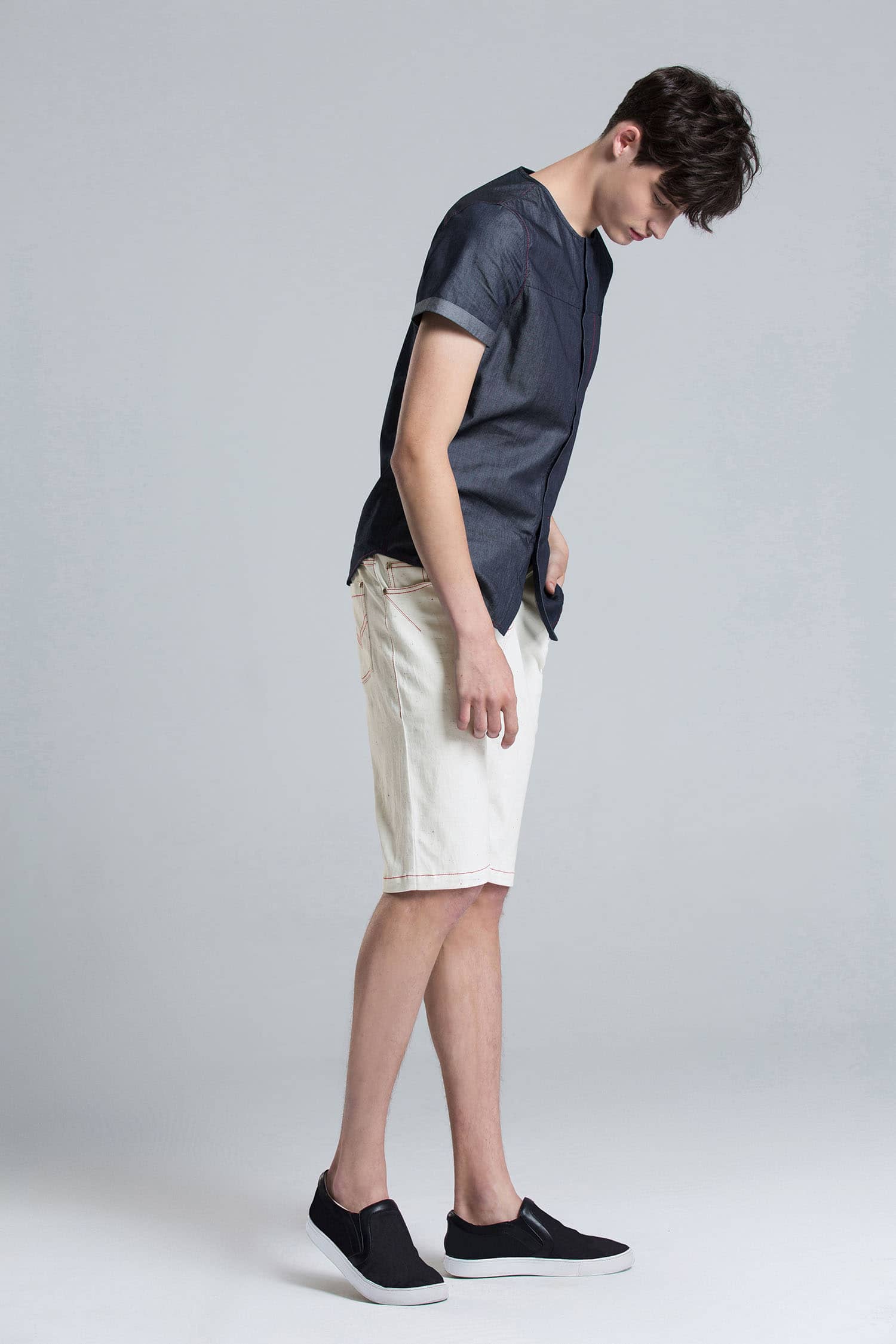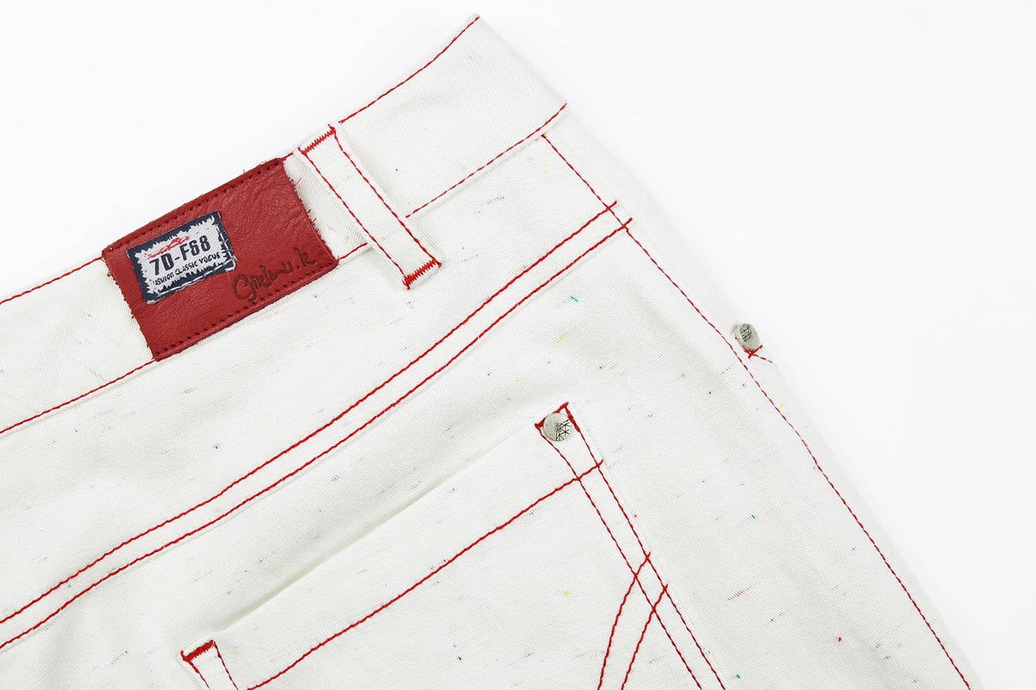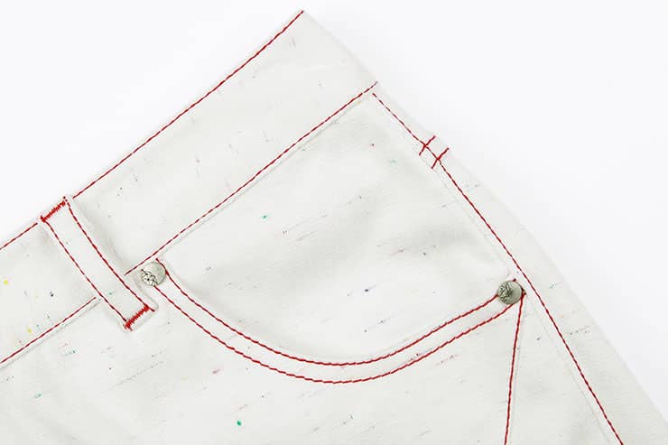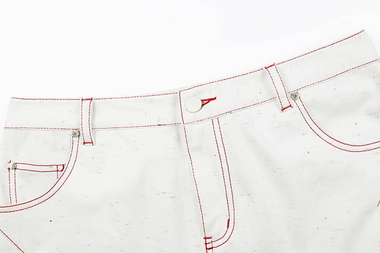 简中腰,月牙插袋,整件外露撞色明线车缝,为简洁的轮廓注入更多的现代设计,流畅的合体版型,特色的棉质牛仔面料植入彩色纱线,带来丰富的立体层次。