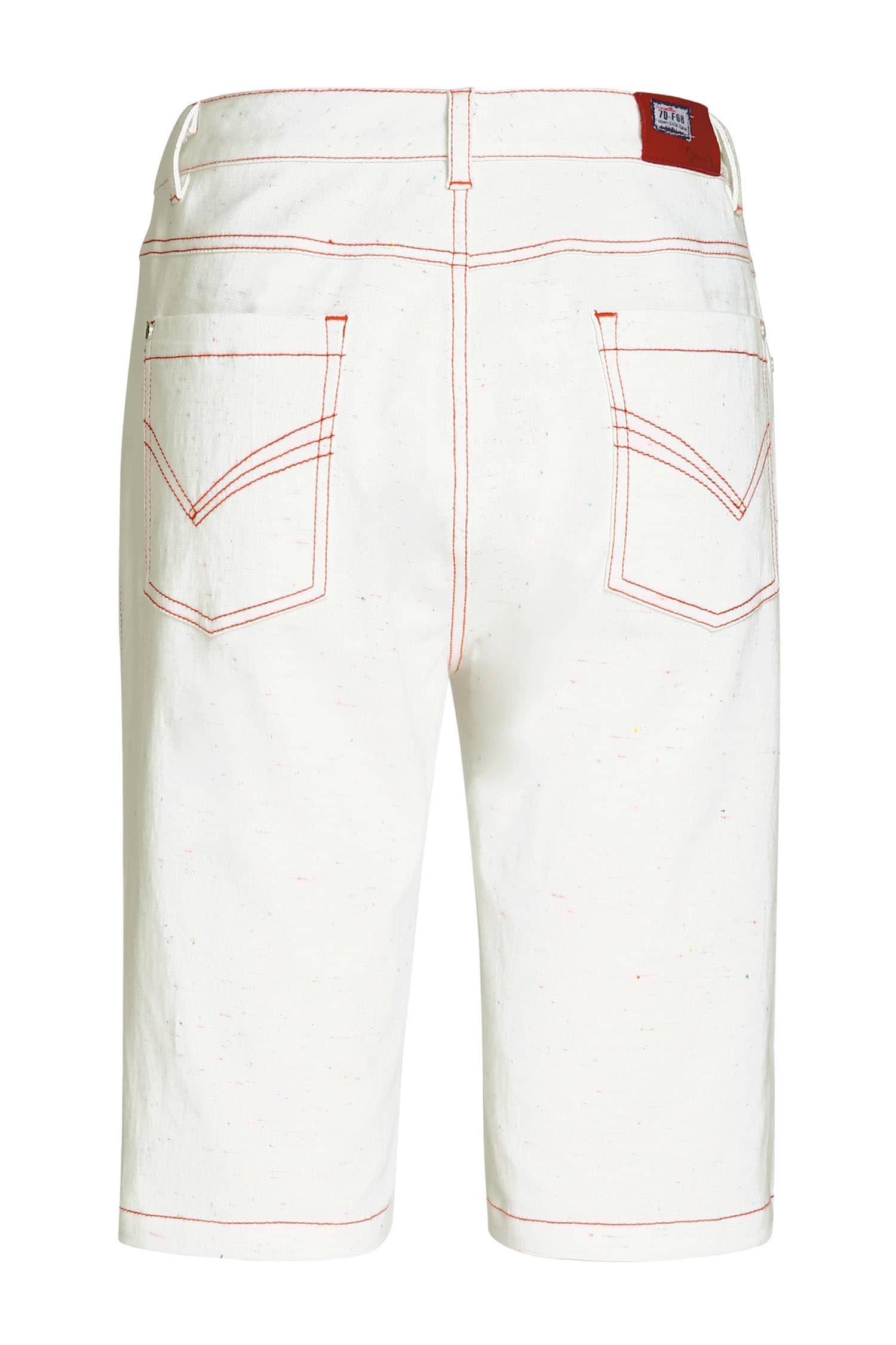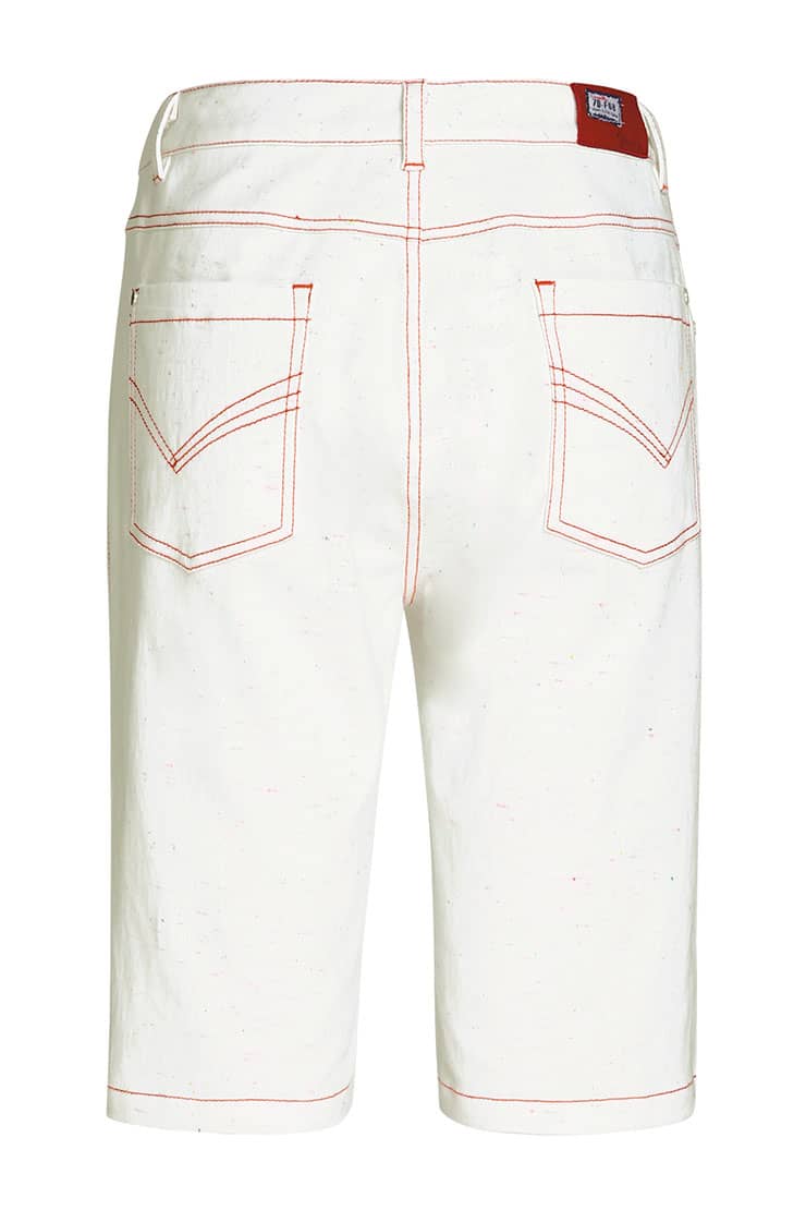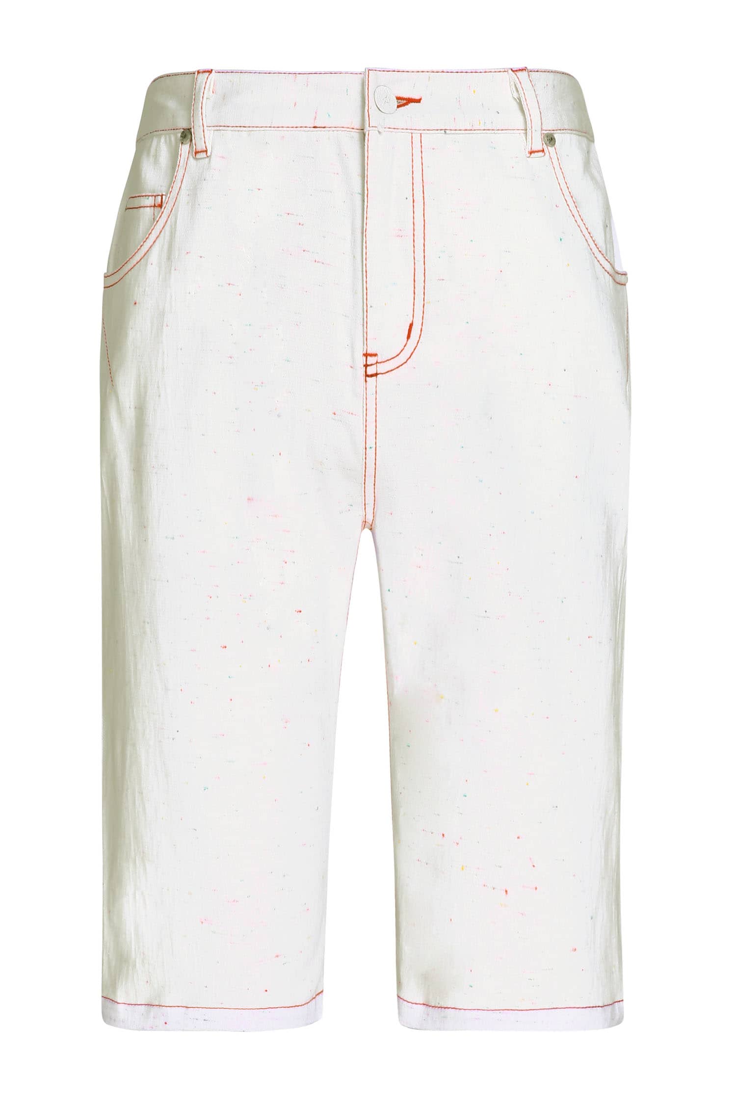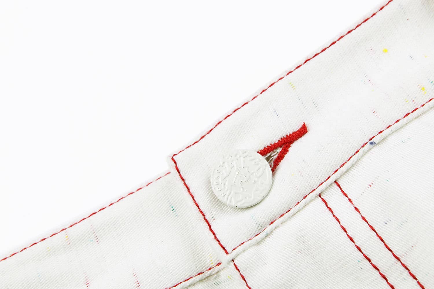 简中腰,月牙插袋,整件外露撞色明线车缝,为简洁的轮廓注入更多的现代设计,流畅的合体版型,特色的棉质牛仔面料植入彩色纱线,带来丰富的立体层次。