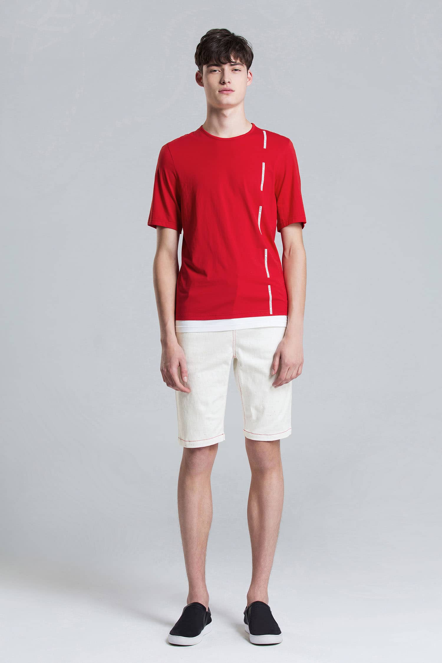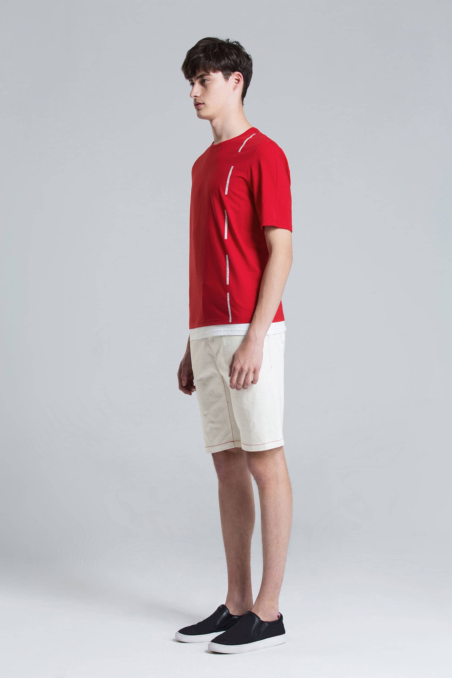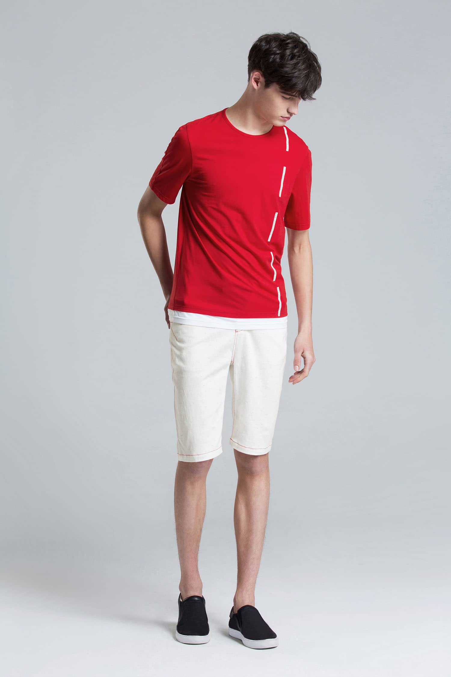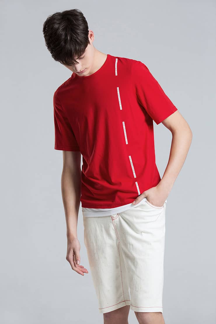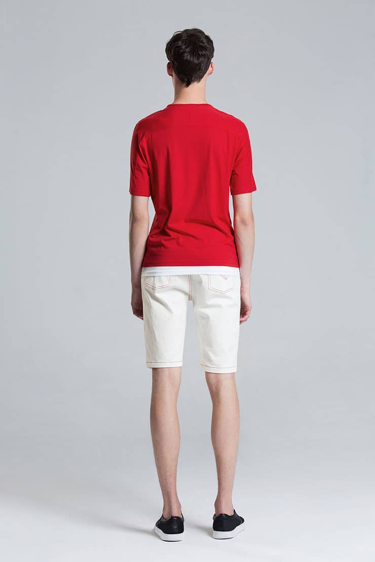 圆领套头设计,前幅字母胶印,下摆撞色拼接,合体短袖剪裁,优质的精梳弹力棉,伸缩性好,手感柔软,穿着舒适亲肤。