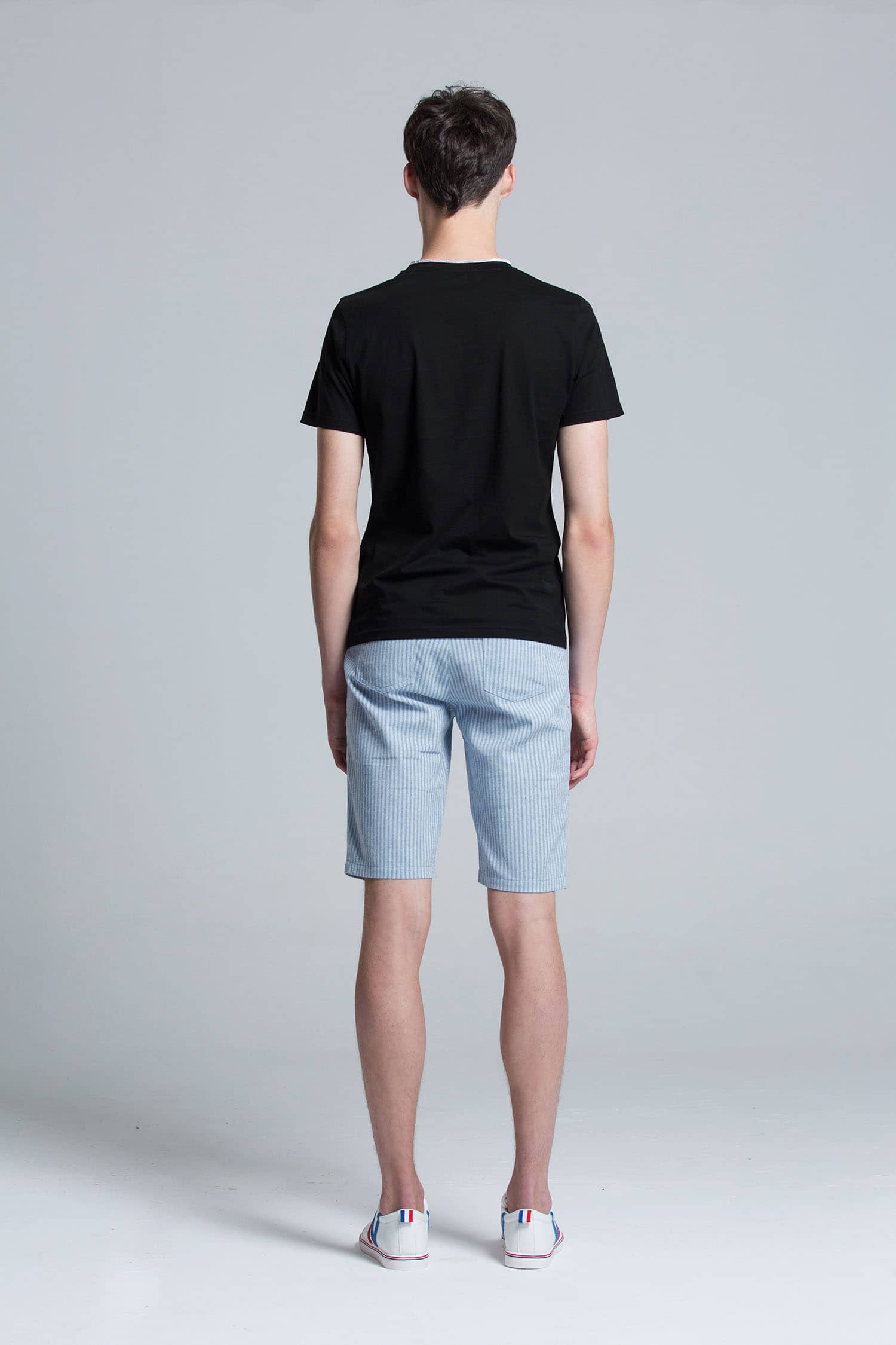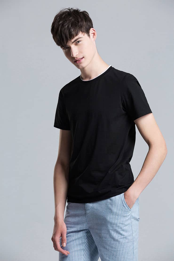 双色卷边圆领设计,合体版型剪裁,优选舒适纯棉面料,柔软亲肤,穿着吸湿透气。