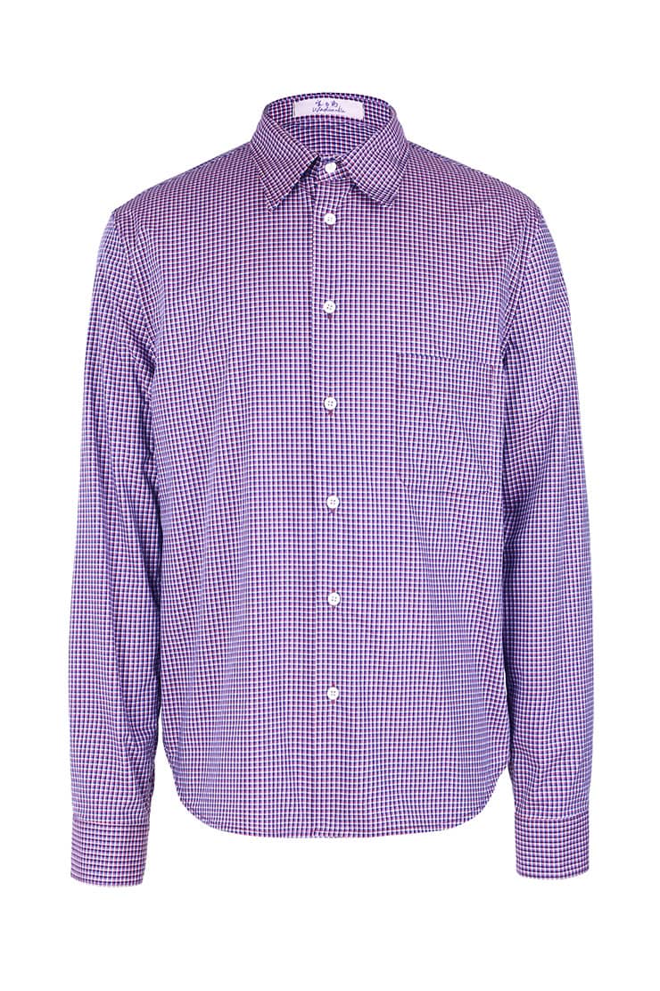 纯棉长袖衬衫,尖角企领,经典前襟,左前胸拼格圆角贴袋,后背担干分割,弧形下摆,袖口圆角叠门,合体版型,后腰、侧缝收省,打造舒适合体廓形。