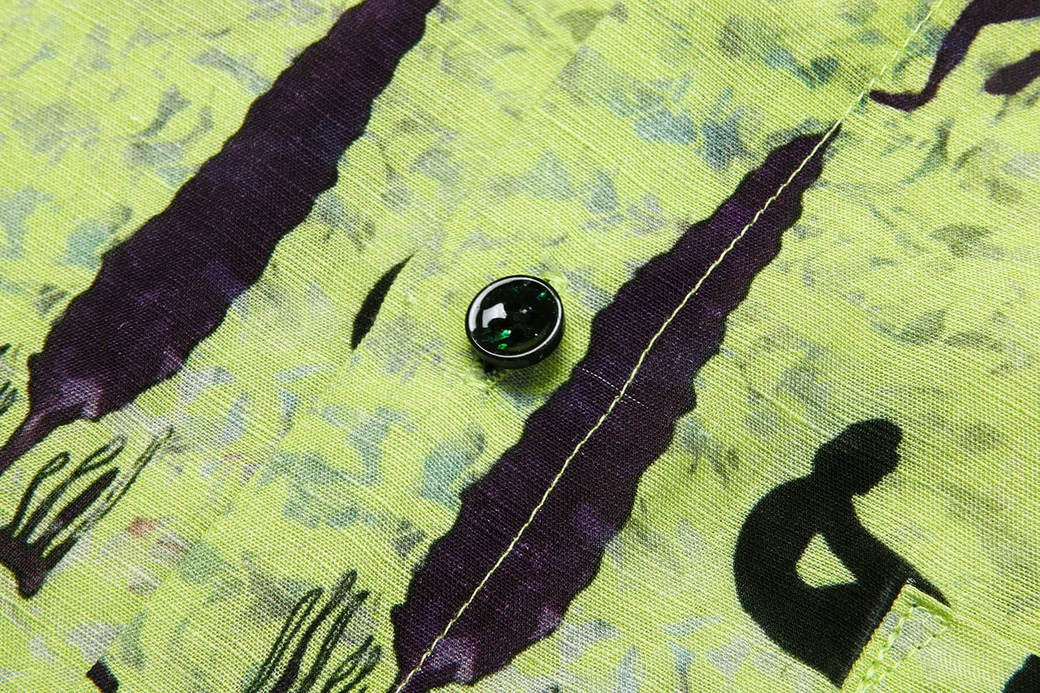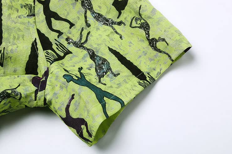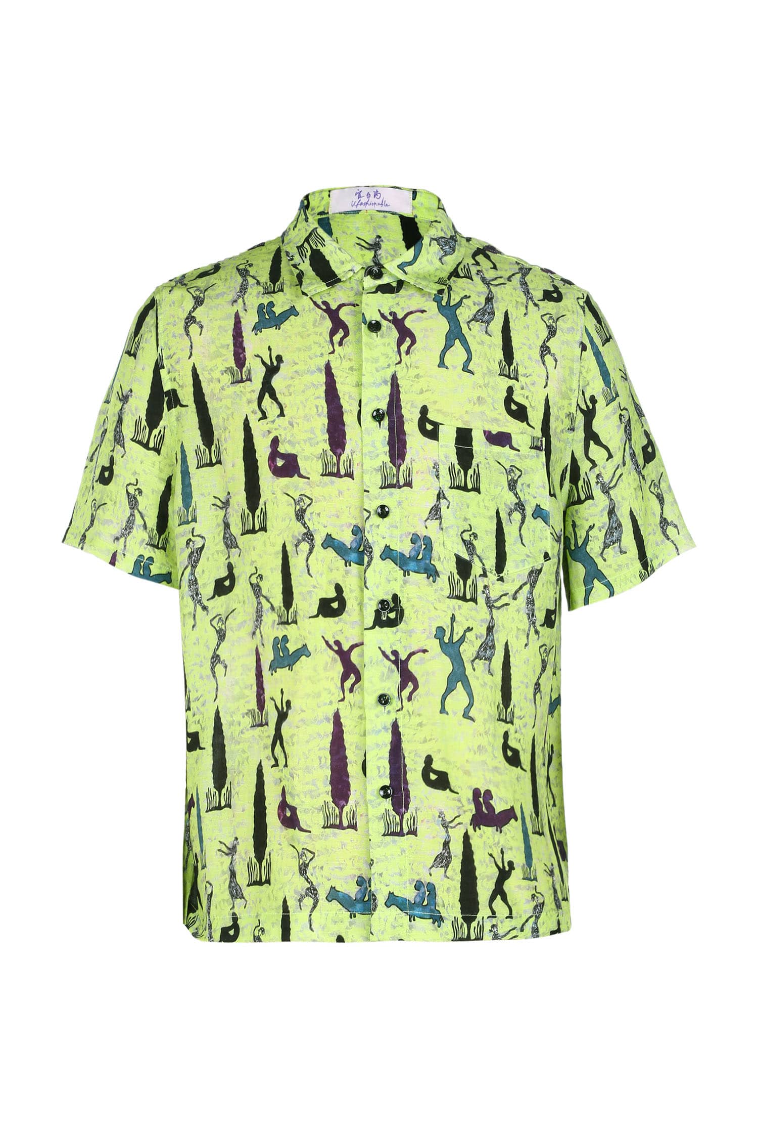 亚麻印花短袖衬衣,尖角企领,经典前襟,左前胸贴袋,后背担干分割,平直下摆,侧下摆开衩,打造舒适合体版型。