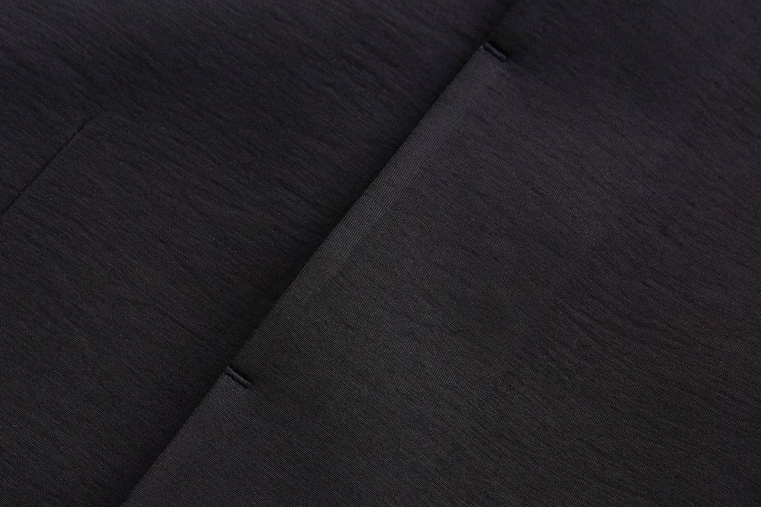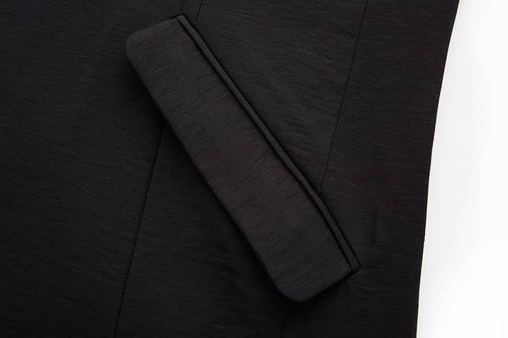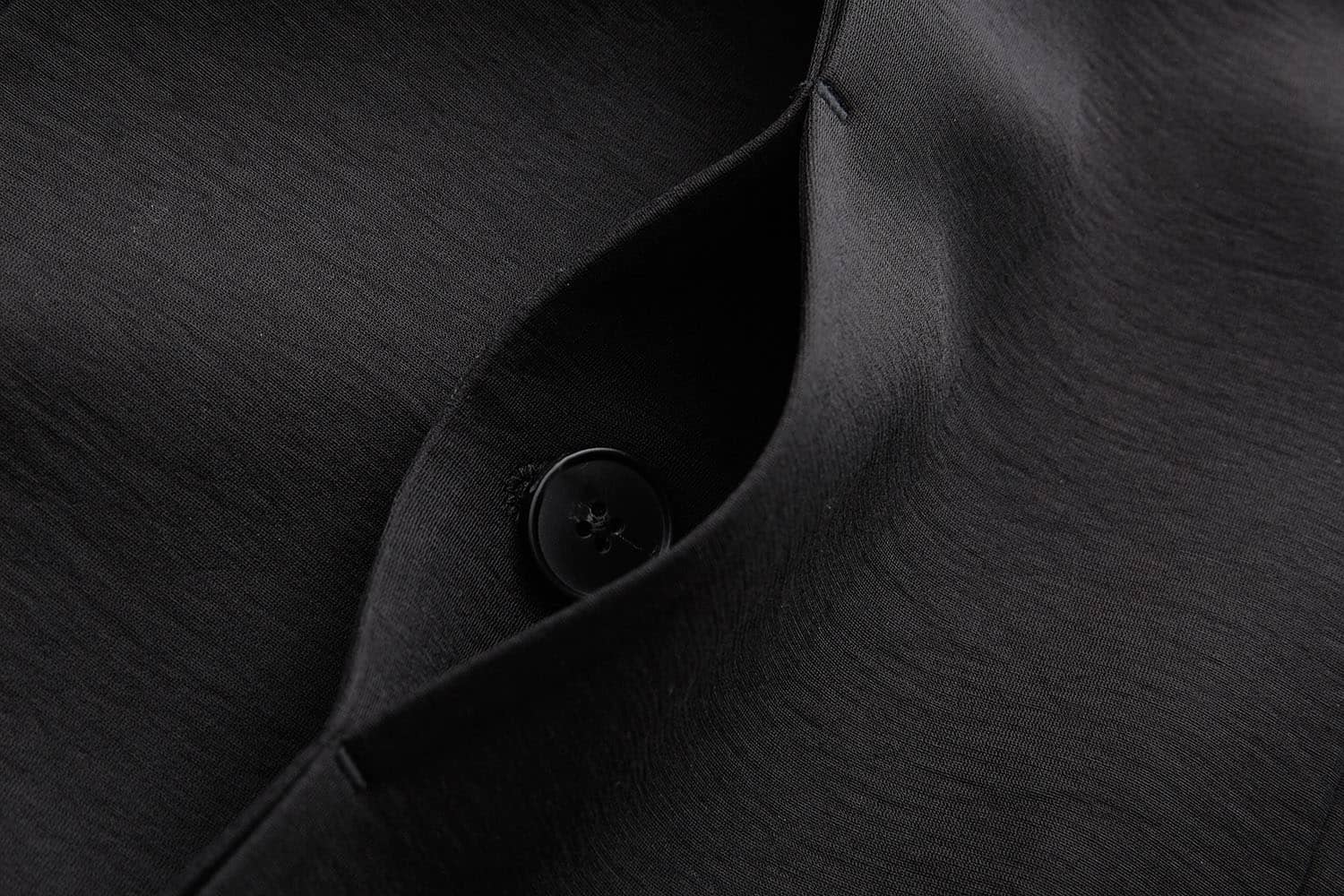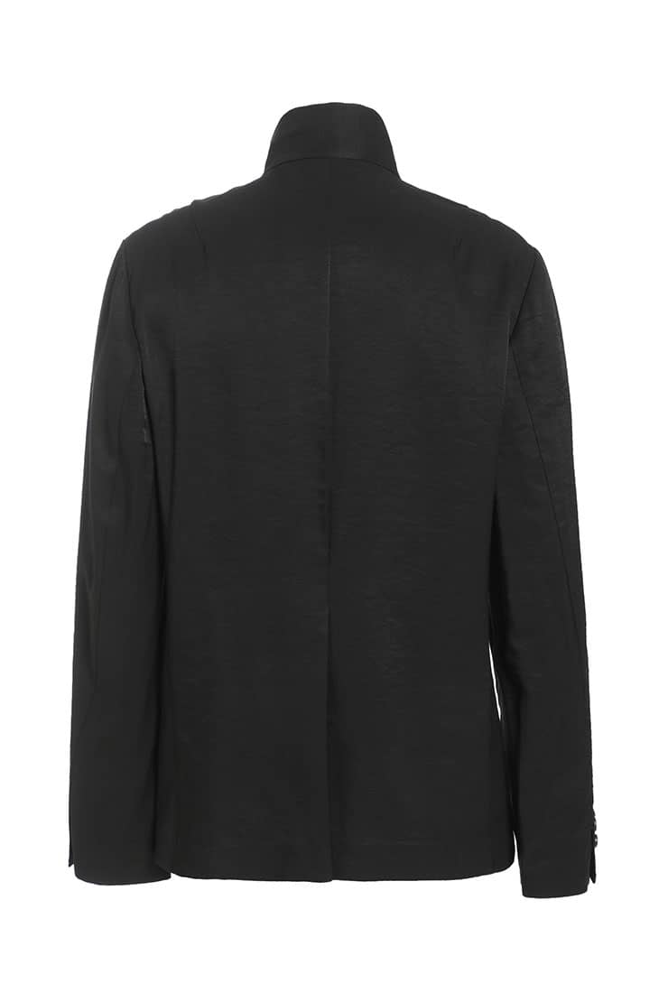 高密支的梭织面料,防风、挺括舒适,立领,暗门襟,圆角下摆,前幅下边两侧设有斜插夹袋盖的双嵌线衣袋,袖子倾斜分割,袖叉设有三粒扣。