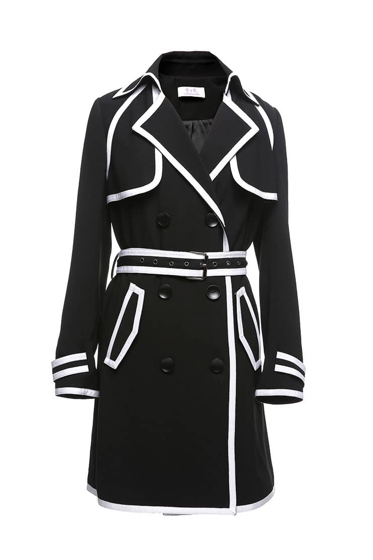 采用高档乱麻面料,经典风衣款式,双排六粒扣,前后挡风,系腰带,增加衣身的层次感,简约大方的撞色织带勾边,强化轮廓结构,彰显都市女性的迷人魅力。