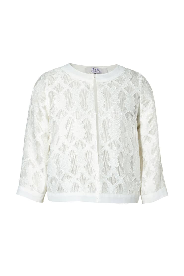 混纺针织面料,触感温润细腻,针织小开衫,前片大面积垂落,呈现不规则的下摆,袖子拼接氨纶面料,具有极好的回弹性,修饰手臂赘肉,款式简单易搭配。