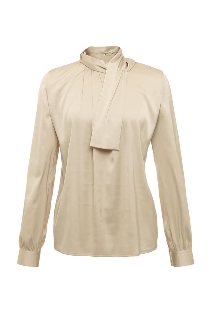 独特的时尚领口,长长的飘带环绕颈脖,给人以精致优雅的感觉,领口下方不对称的褶皱,独特的气质传达女性不拘一格的时尚追求。
