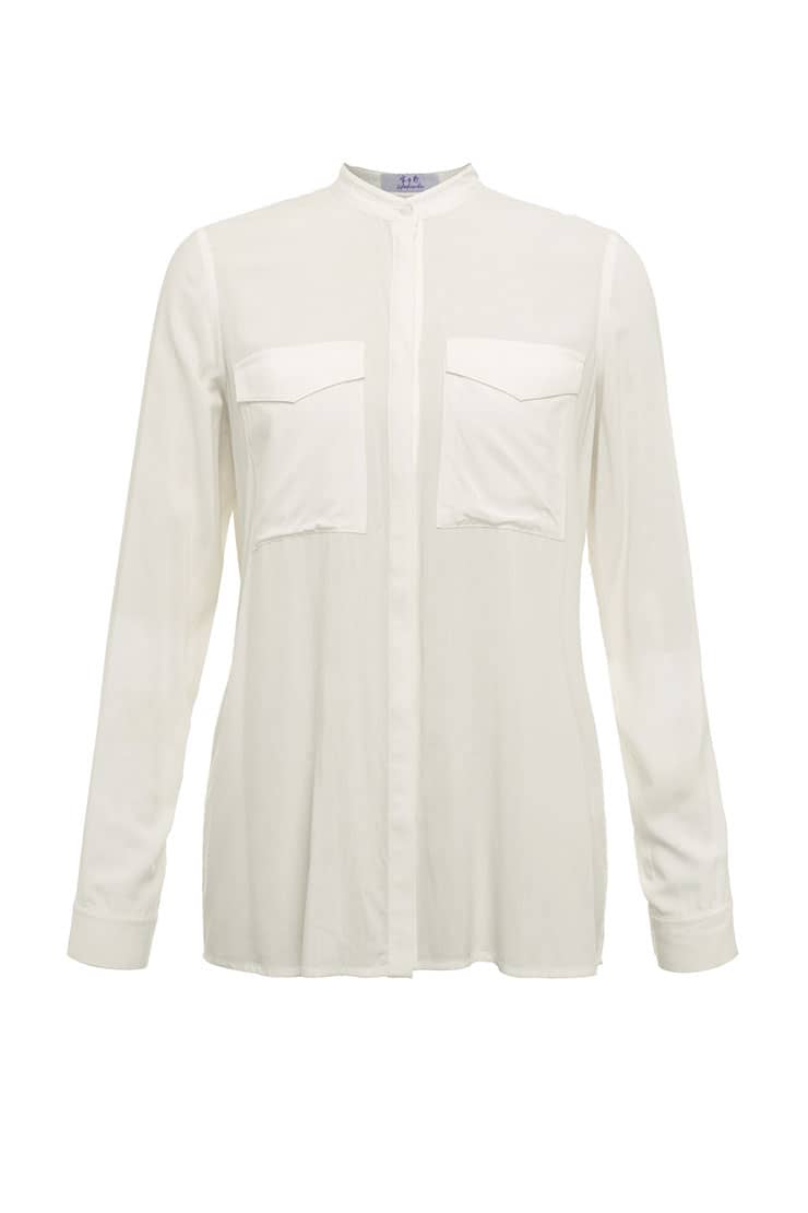 柔软舒适的人棉面料,小立领,暗门襟,直摆,前幅对称大贴袋配袋盖,让衬衫更加有层次,袖子亦可撸起两穿,整体干练、大方。